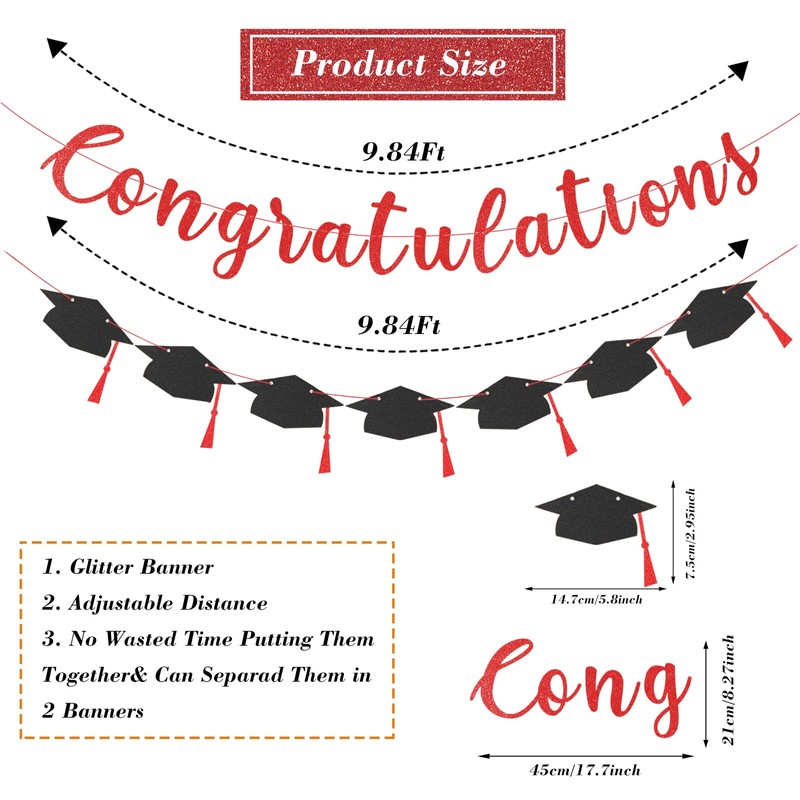 - Versatile Decoration: This glitter congratulations banner is not only suitable for graduation parties but also for other occasions such as weddings, retirements, and anniversaries. It can be hung on walls, ceilings, mantels, or used as a photo backdrop.