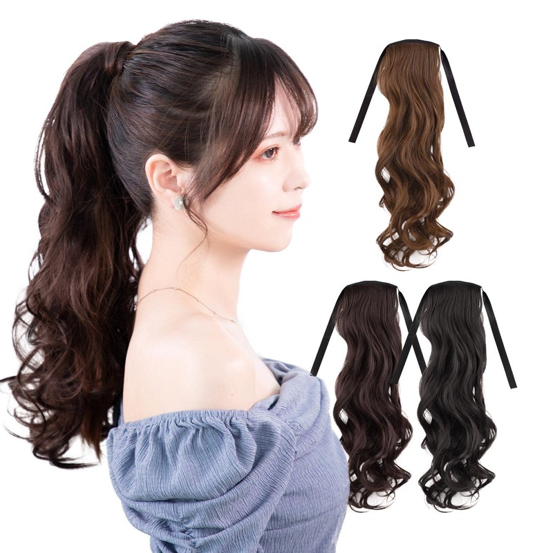 Classe Ponytail Wig, Curl, 17.7 inches (45 cm), Solid Color, Black, Brown, Easy Extension, Twin Tails, Natural Black