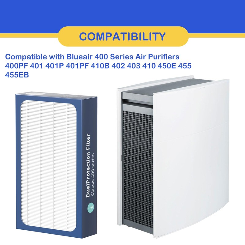 - Superior Compatibility - Our Classic 400 Series DualProtection Filter Replacement Compatible with BLUEAIR Classic 400 Series Air Cleaner Purifiers, 480i, 402, 403, 405, 410, 450E, 455EB, please check your machine model before purchasing!