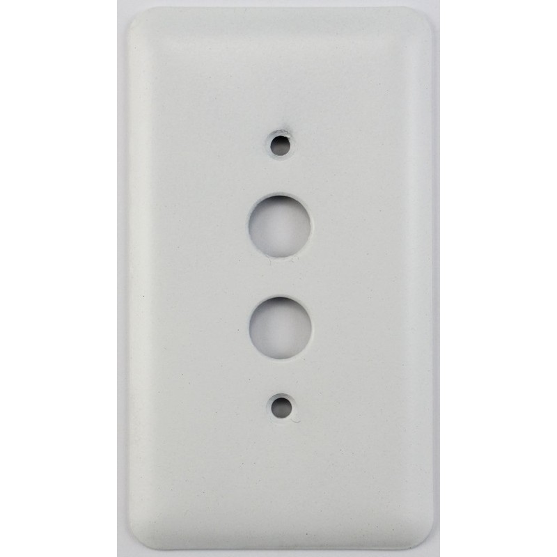 These switch plates are made from thick gauge stamped steel. The design of these switch plates have elegant rounded corners. The switch plates are painted with a high quality durable paint that will hold up to everyday use. These switch plates are painted in a beautiful matte white finish that would be a perfect accents to any room or you can paint them to match the walls in the room. This one gang switch plate will accommodate one antique style push button light switch. The plate measure 5" by 2 3/4". Mounting screws are included.