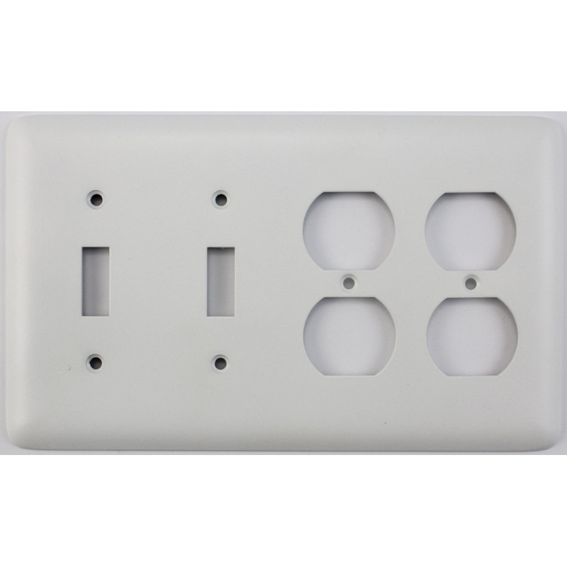 Classic Accents Rounded White Switch Plates - (4 Gang Combo - 2 Toggle Switch 2 Duplex Outlet)