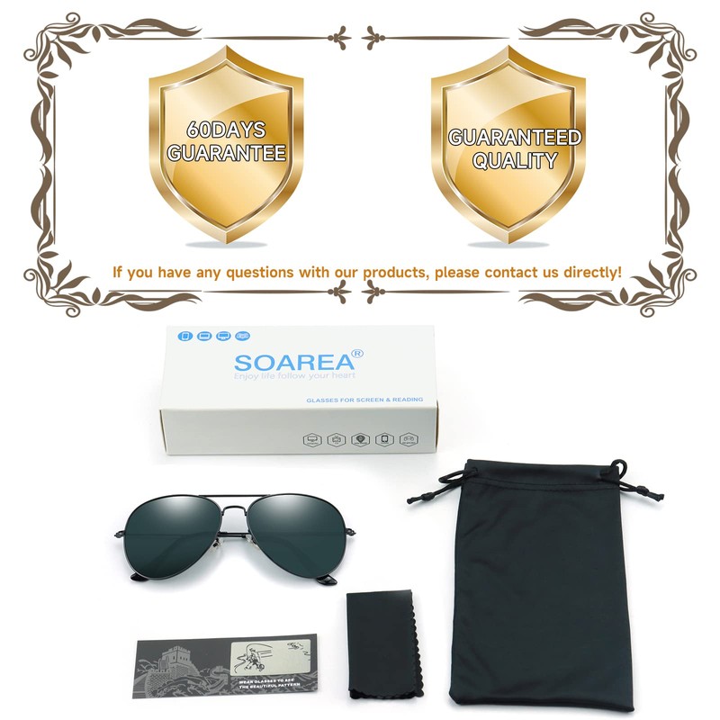 - PERFECT ALL ROUNDER – Soarea pilot sunglasses are the perfect choice for outdoor sports and activities such as taking selfies, cycling, driving, shopping, traveling, hiking, and are suitable as a high fashion accessory and daily wear all year round.These retro sunglasses are suitable for both men and women and suitable for any climate and weather conditions.