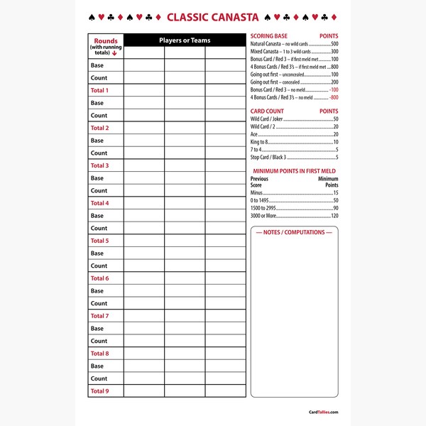 - Several years ago, by popular demand, our company created these Classic Canasta score pads. Enjoy the original!