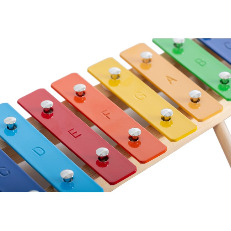 Removable sound plates are painted in bright colours and have rounded corners. The entire glockenspiel