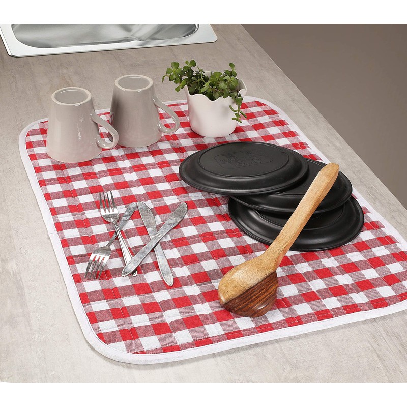 - Each set contains 2 dish drying mats measure 16 inch by 18 inch, classic check plaid weave