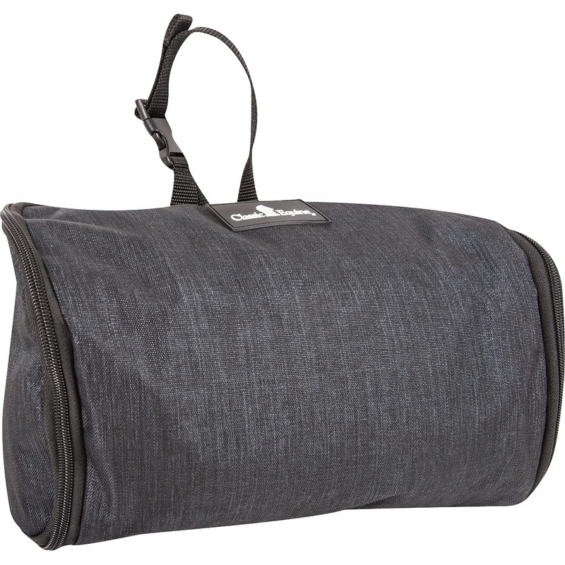Convenient and compact make up bag that folds up and zips for complete closure. Multiple inside zipper pockets provide ample room for make up and toiletries. Top buckle allows for hanging anywhere.