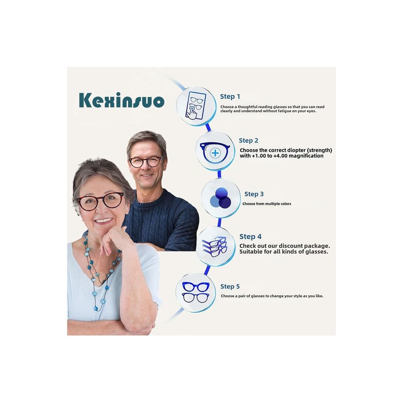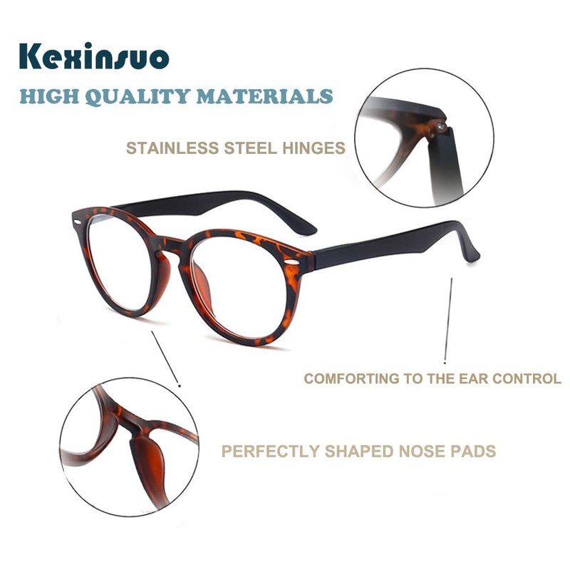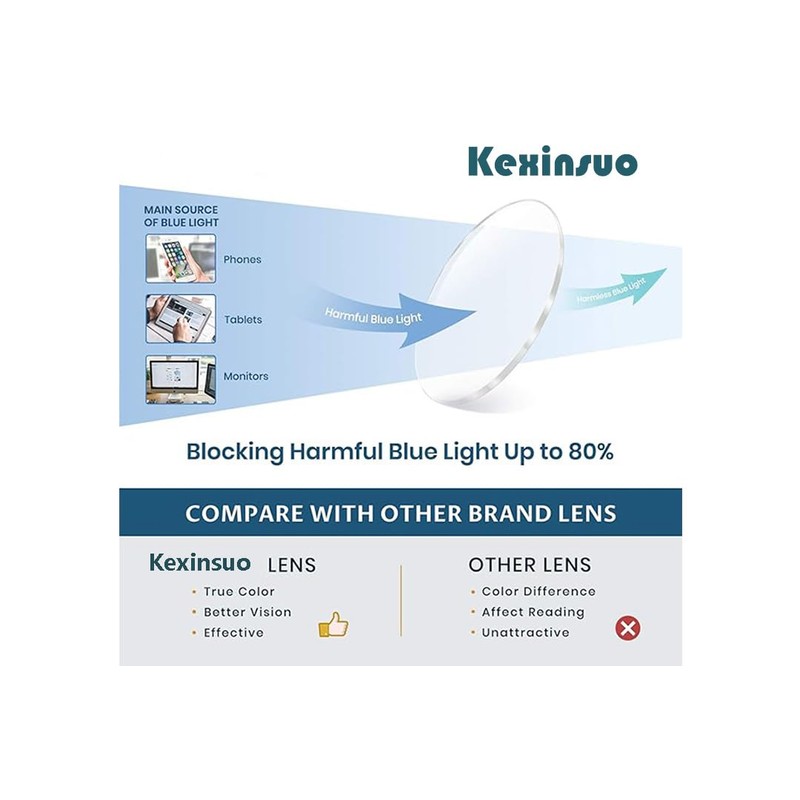 - Anti Blue Light: Kexinsuo Reading Glasses equipped with high-quality blue light filters, the glasses can effectively resist harmful blue light. They are perfect for longer periods of computer use.