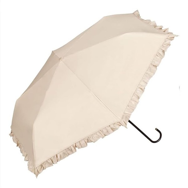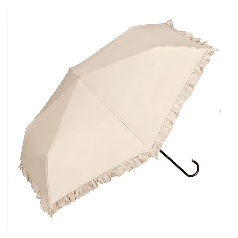 Classic Frill Folding Umbrella Beige – UV Protection & 100% Light Block – Elegant & Cute Mini Umbrella for Women – Sun & Rain Umbrella Lightweight & Compact