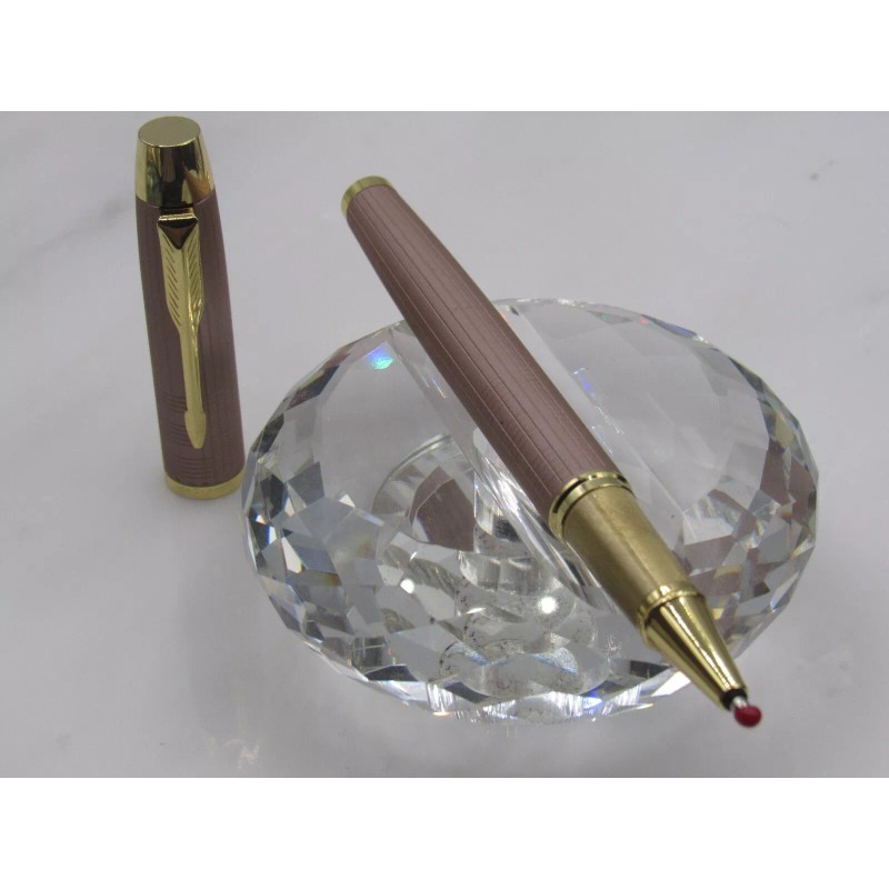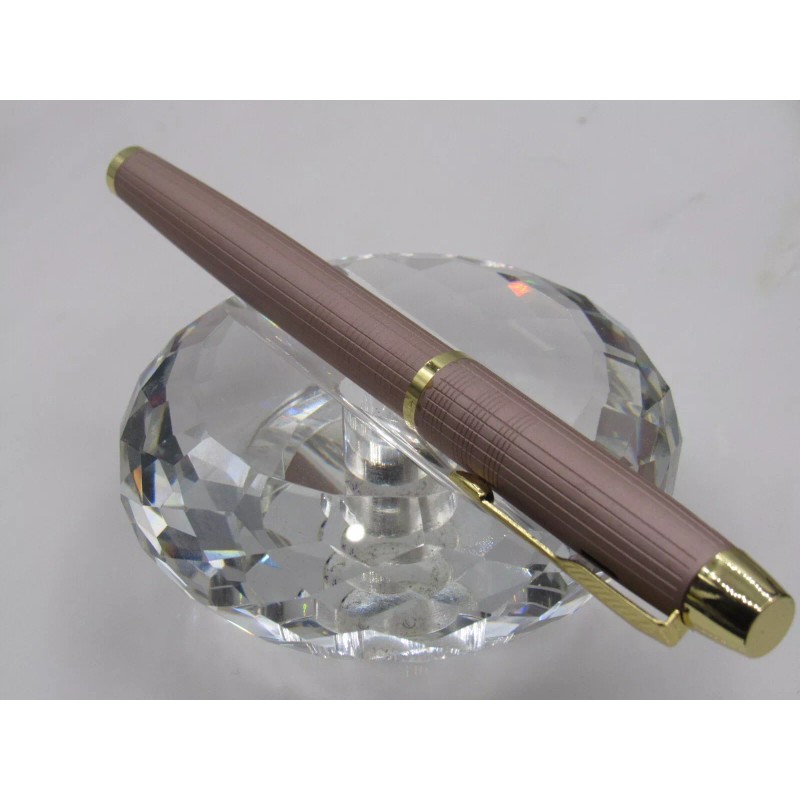 GORGEOUS HIGH QUALITY PINK BRUSHED CLASSIC ROLLER BALL PEN IN GOLD FINISH - USES PARKER ROLLER BALL REFILL