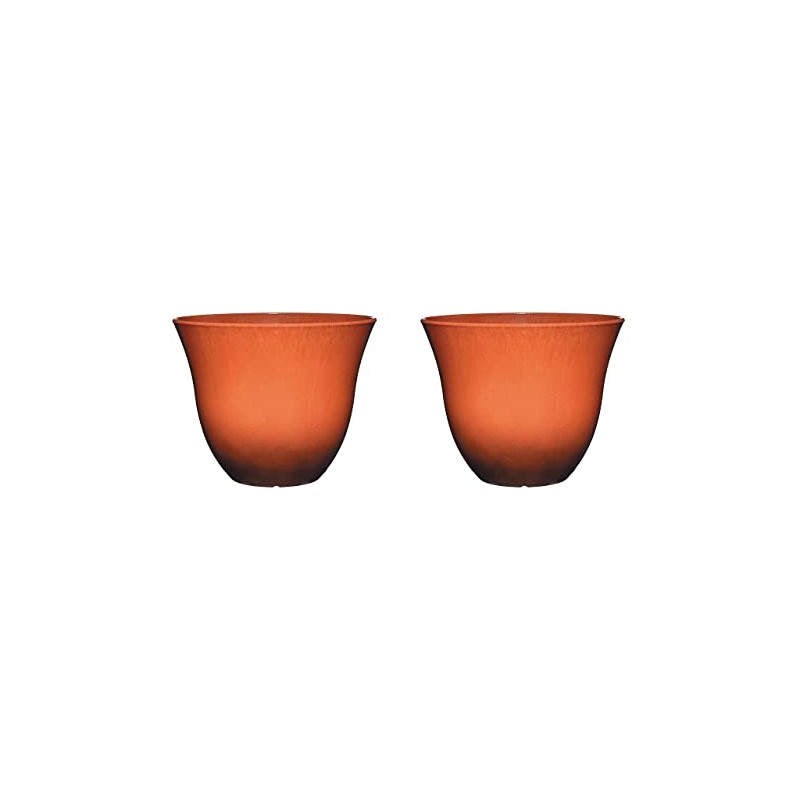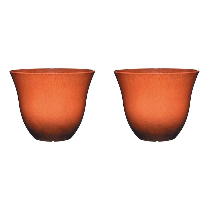 Classic Home and Garden Honeysuckle Resin Flower Pot Planter, Orange Ember, 13", 2 Pack