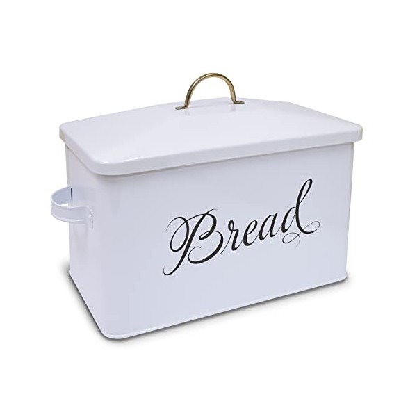 Classic Metal Bread Box with Side Handles, Large Capacity (2 Bread Loaves), Farmhouse Bread Bin for Kitchen Countertop, by Better Kitchen Products, Steel Bread Storage Container with Lid, White