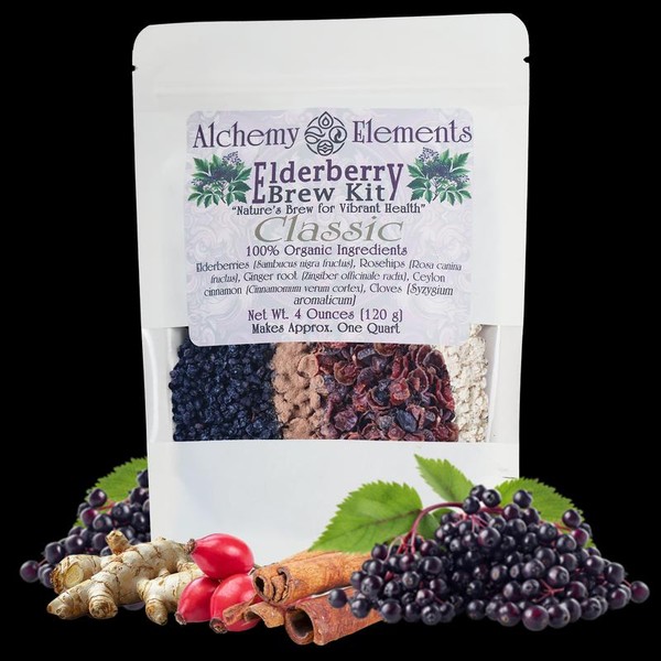 Classic Organic Elderberry Syrup Brew kit by Alchemy Elements 4oz bag makes one quart Beverage