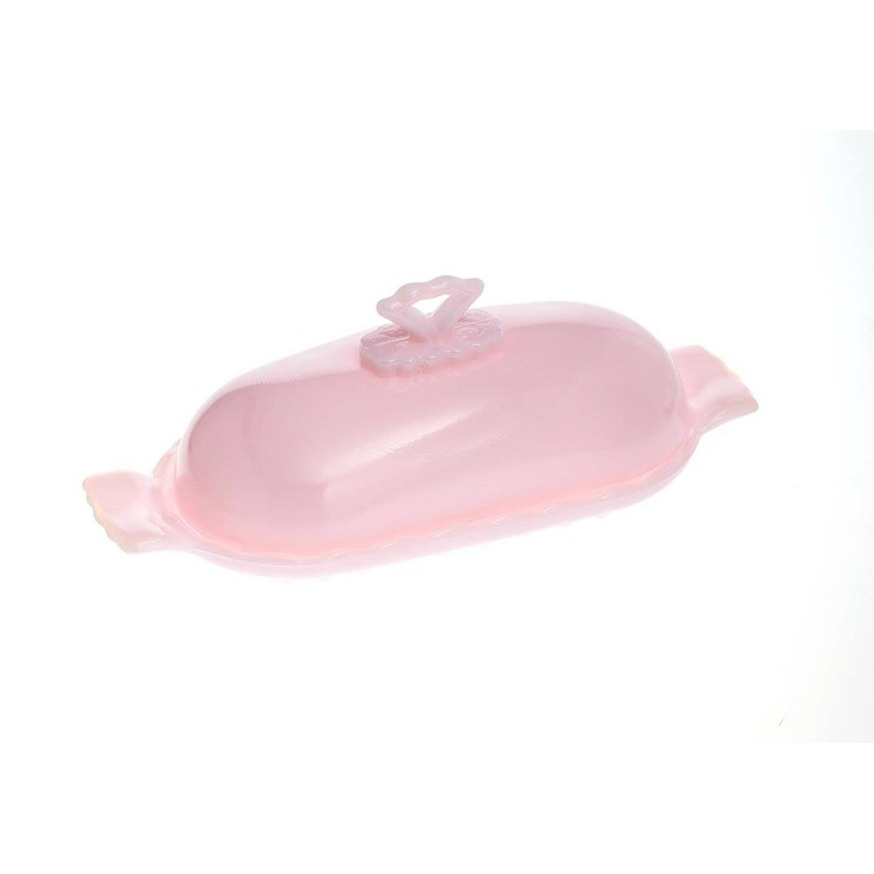 Classic Pink Milk Glass Butter Dish Handled Sides Glass Pull Top