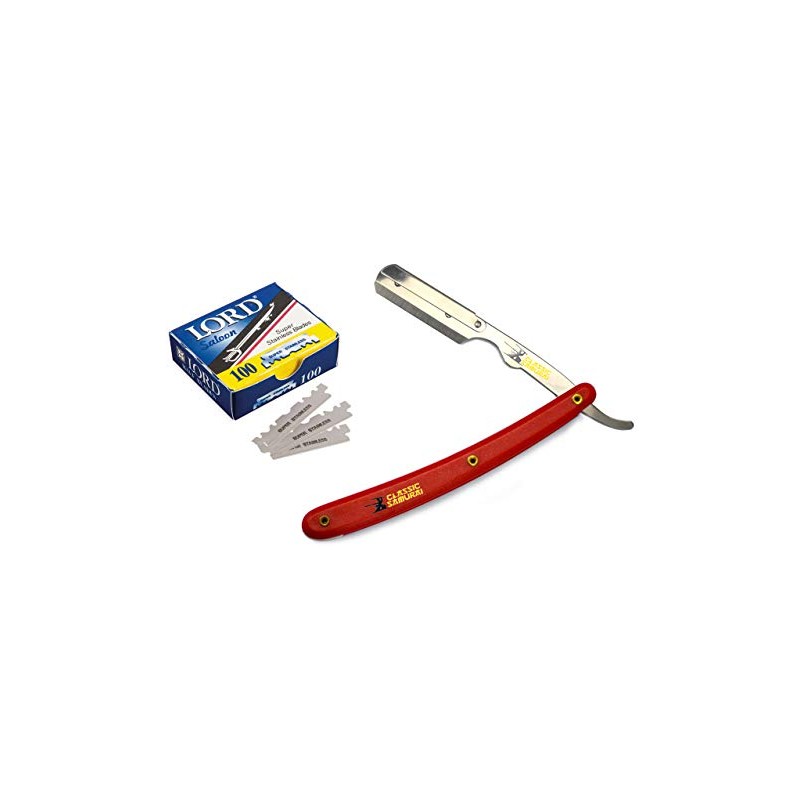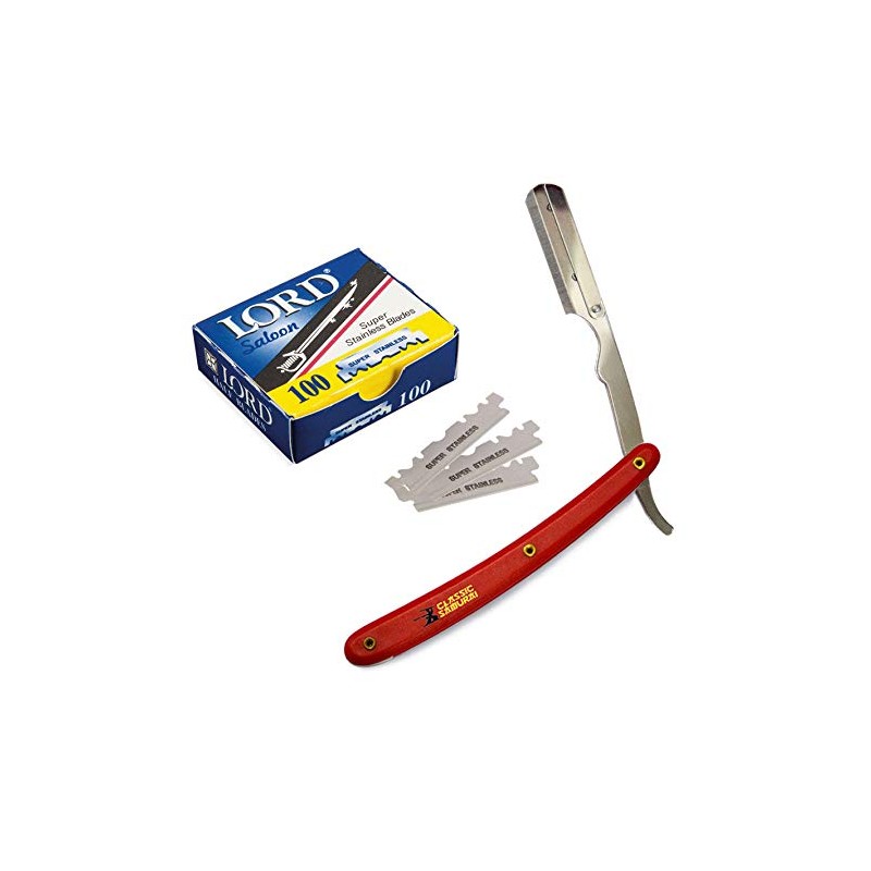 Classic Samurai Stainless Steel Professional Barber Straight Edge Razor with 100 Lord Count Single Edge Razor Blades (Red)