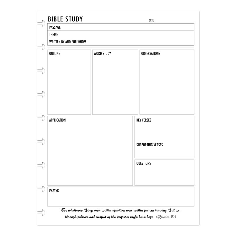 Classic size Bible Study Refill for Disc Notebooks, 9 Disc, 7" x 9.25", Compatible with Disc-Bound Planners such as the Happy Planner, 30 Double-Sided sheets