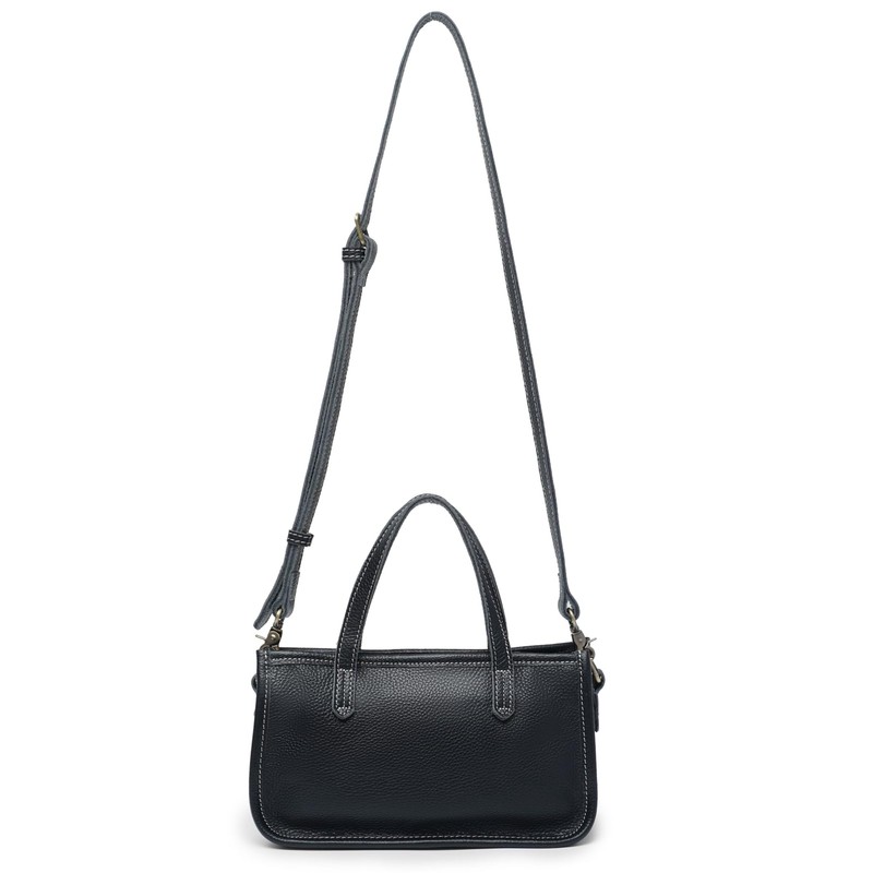 Classic Small Genuine Leather Crossbody Handbag, Double Handle Satchel, Phone Purses For Women,Small Purses, Black