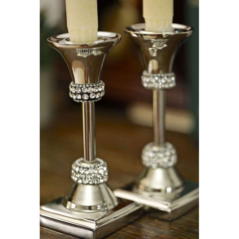 Classic Touch Taper Candle Holder-Stainless Steel Candlesticks with Crystal Diamonds Dotting Edge- Modern and Traditional Design- Measures: 5.5" H (1 Pack)
