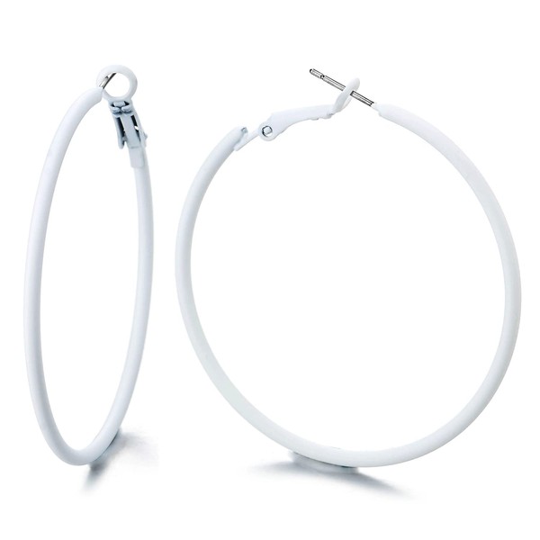 Classic White Large Circle Statement Hoop Huggie Hinged Stud Earrings (CA)
