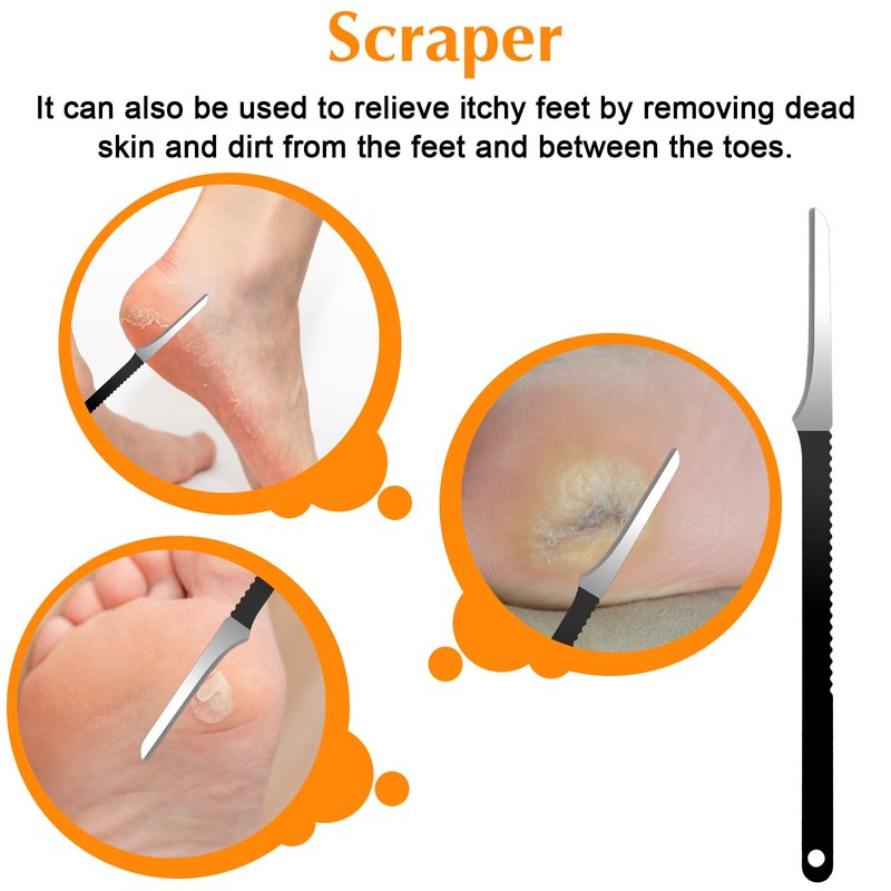 - 【Comprehensive Ingrown Toenail Tools】This ingrown toenail removal kit includes wide blade knife, strip knife, scraping knife, inclined knife.Each ingrown toenail blade is designed to address specific foot care issues, making it an essential callus remover tool for maintaining healthy feet