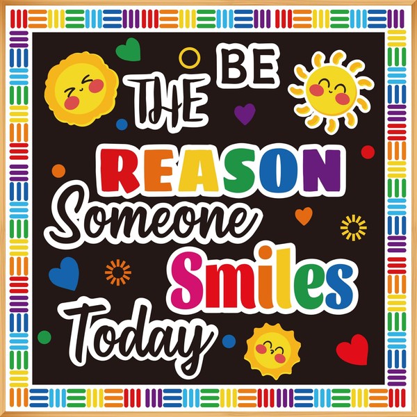 - 【Inspire with Style – Complete Classroom Décor Set】Includes a vibrant lettering set with the phrase “Be the Reason Someone Smiles Today”, complemented by 4 cheerful cutouts in sun and sunflower themes, 25 decorative border strips in assorted bright colors, and 120 vivid confetti stickers – everything you need to transform your space instantly.