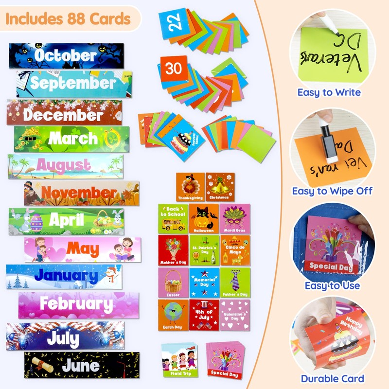 - Versatile for Every Setting: The calendar set is ideal for office, classroom and home use. With its customizability, it can help young students visualize and master the concept of calendar, enhance their memory, inspire their imagination and improve hands-on ability.