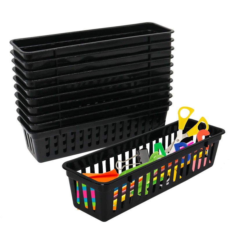 FEOOWV Classroom Pencil or Rubber Organizer Basket Trays, Office Supply Baskets Organization Trays for Home School Classroom Office 12 Pack (Black)