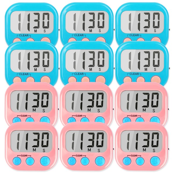Classroom Timers for Teachers Kids Large Magnetic Digital Timer 12 Pack-Blue Pink