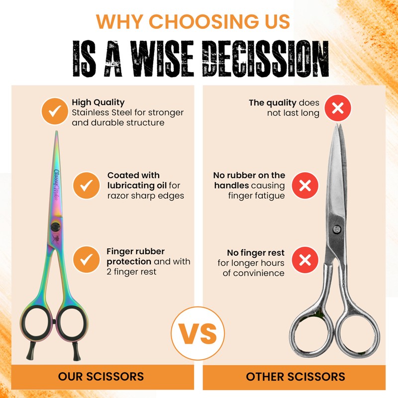 - Built to Last Tool: Our scissors are crafted with durable stainless steel, coated with lubricating oil to maintain razor-sharp edges that last. Unlike other scissors that dull quickly, our blades withstand the demands of frequent use for consistently sharp performance.