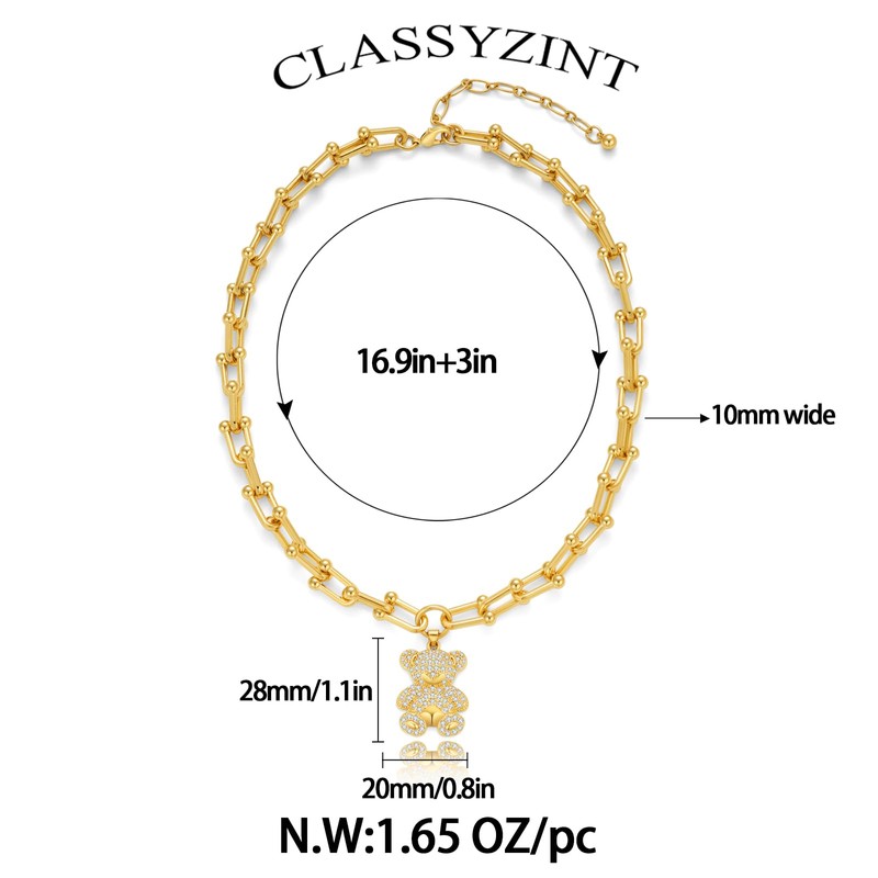CLASSYZINT Gold Bear Pendant Necklace U Link Chunky Chain Necklace for Women Animal Charm Necklace Everyday Boho Accessories