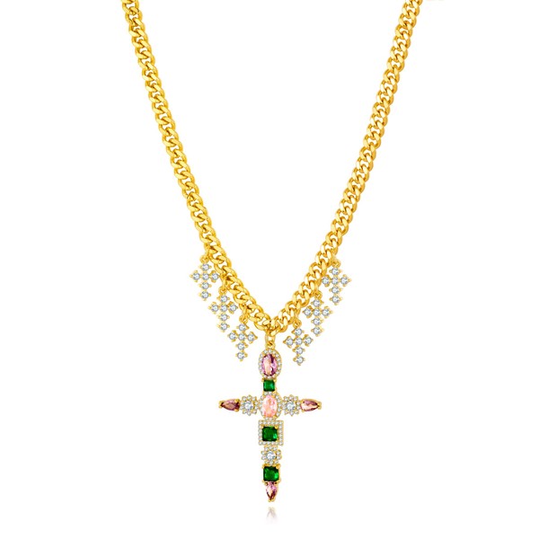 CLASSYZINT Gold Cross Pendant Necklace for Women Colorful Rhinestone Necklace Adjustable Necklace