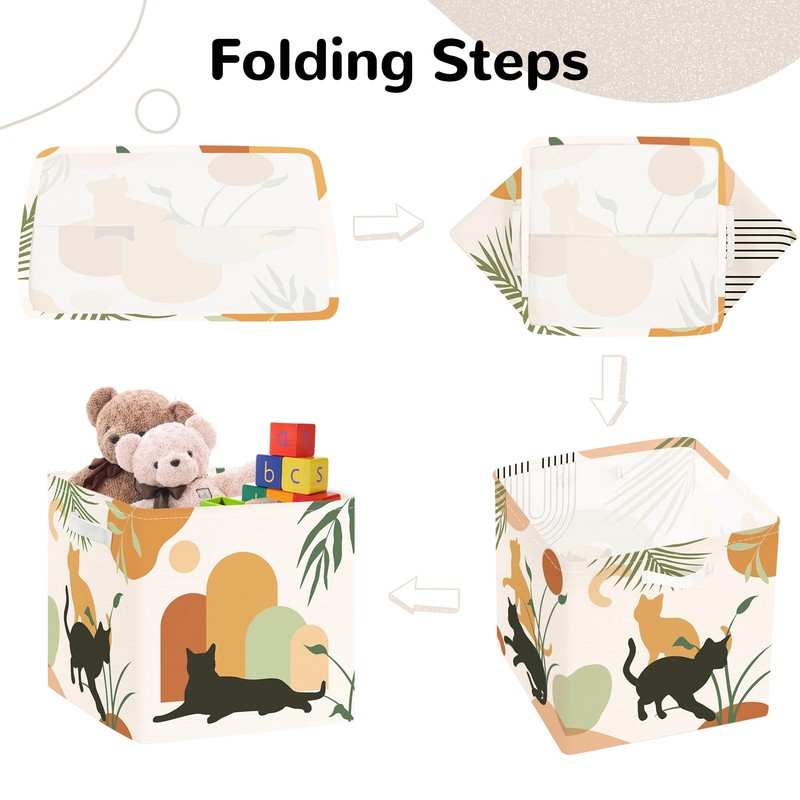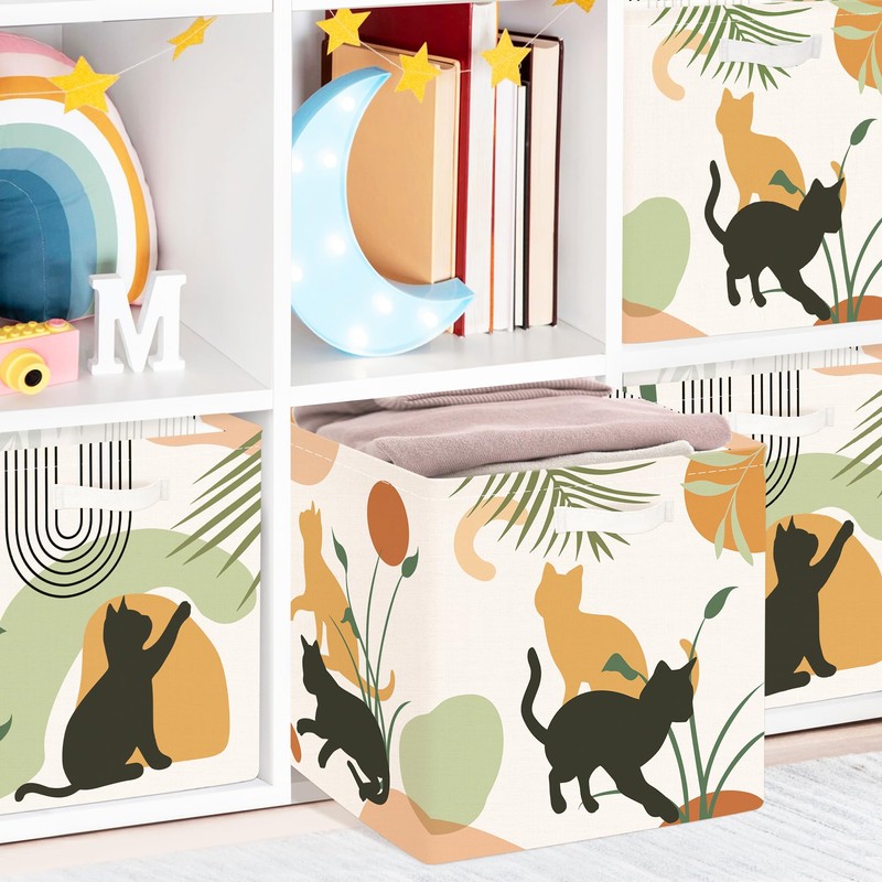 Clastyle Bohemian Animal Storage Cube Organizer Set Leaf Closet Clothes Cube Storage Bin Decorative Nursery Adult Kids Toy Box Chest Women Girl Book Shelf Basket, Cat, 11.8x11.8x11.8 in