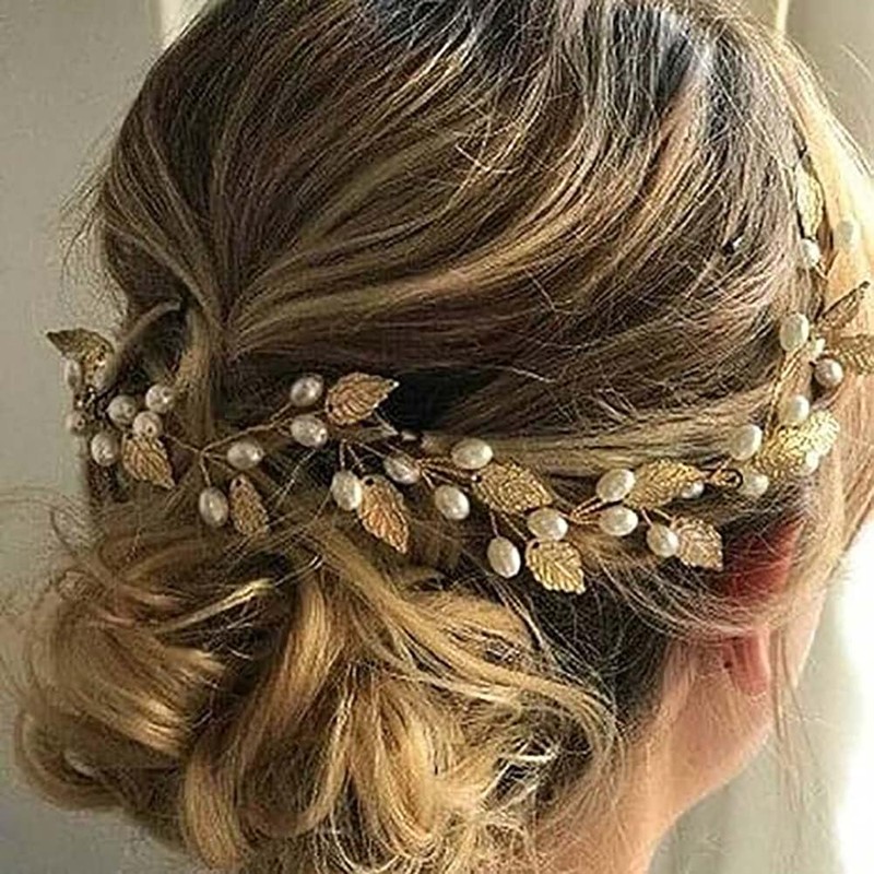 Clataly Bride Wedding Hairband Gold Climbing Plant Shape with Leaves Headband Bridal Pearl Hair Piece Accessories for Women and Girls