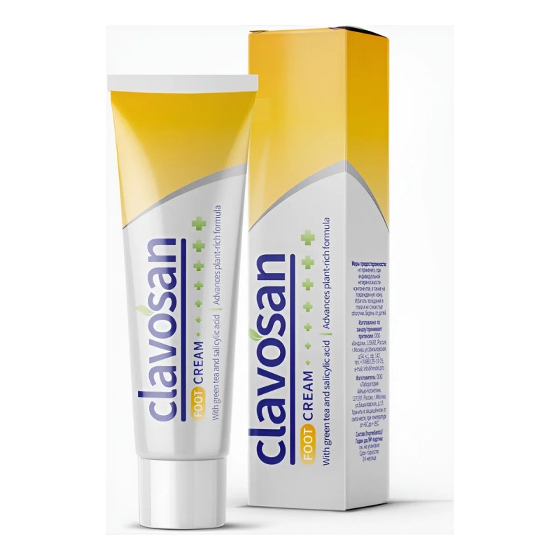 La crema profesional Clavosan es un producto eficaz y seguro para mantener saludables y bella la piel de los pies y uñas. Los componentes activos del árbol del té y el ácido salicílico tienen pronunciadas propiedades antisépticas y antibacterianas, lo que ayuda a eliminar los olores desagradables y las molestias. Gracias a su composición natural, el producto es suave con la piel sin provocar reacción alérgica ni irritación.