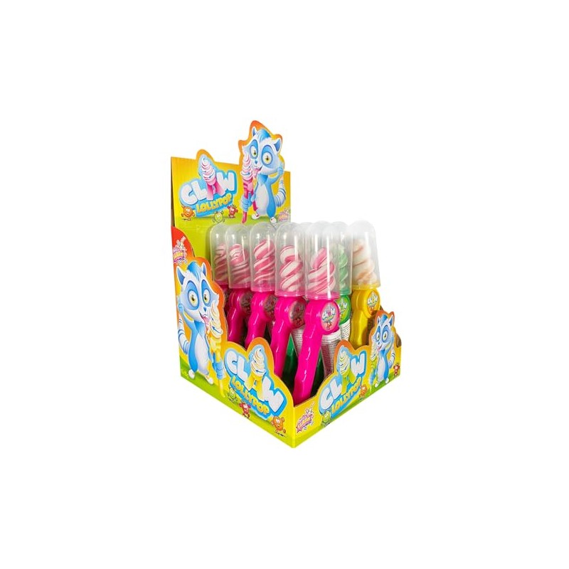 Claw Pop Lollipops, 15 x 15 g Display (15 x 15 g) - Rotating 2-Colour Lolli with Apple, Strawberry & Orange Flavour, Interactive Game Lollipop for Children's Birthdays & Goodie Bags