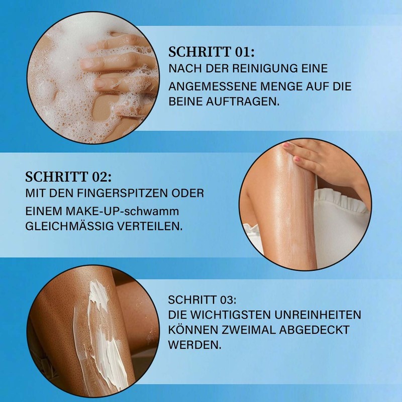 - 【Bein-Makeup】Clawrex Leg Makeup kann glatte und perfekte Beine für Sie schaffen, die effektiv den Hautton ausgleichen können. Verbessern Sie die natürliche Schönheit Ihrer Beine und lassen Sie sie gesünder, straffer und schöner aussehen.