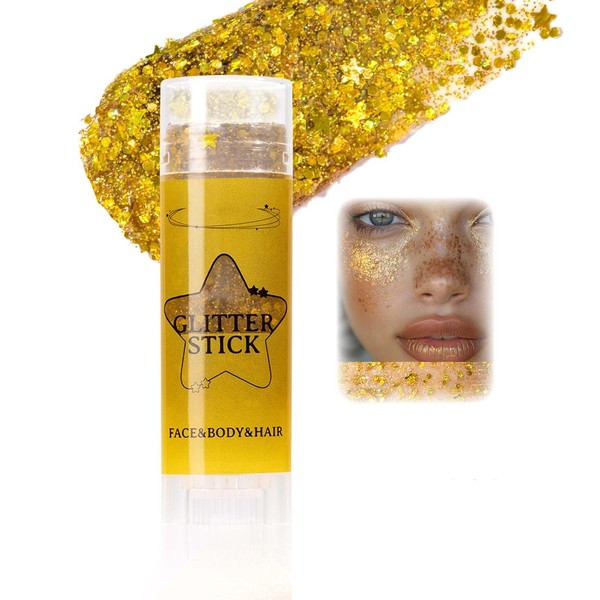 Clawrex Glitzerstifte, Chunky Body Glitter Stick, Mermaid Sequins Glitzer Gesicht, Face Sparkling Glitzer für Haare Lippen Nails Makeup, Holographic Shimmer, Body Glitter Gel für Festival Rave(Gold)