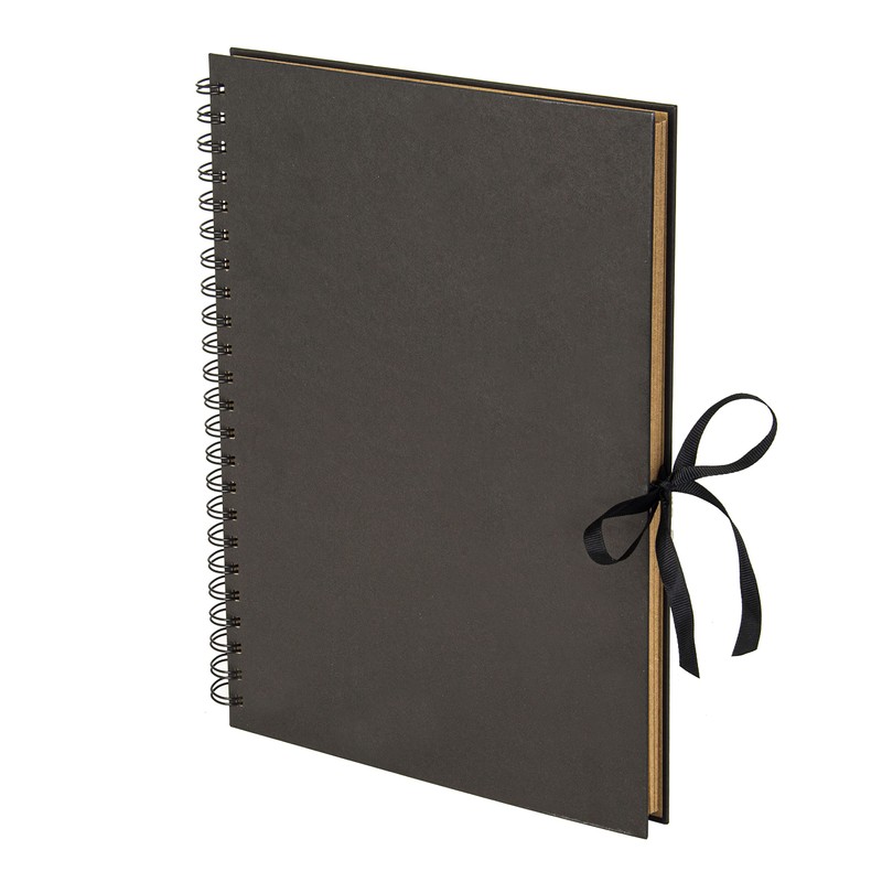 - Eco-friendly, stylish design with silk ribbon tie and spiralbound spine
