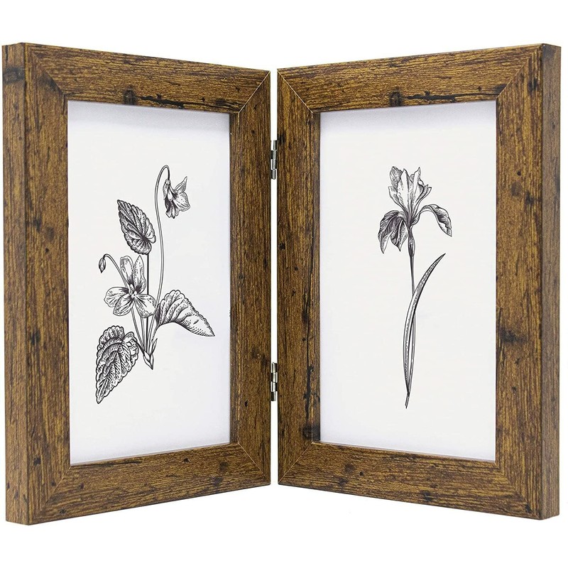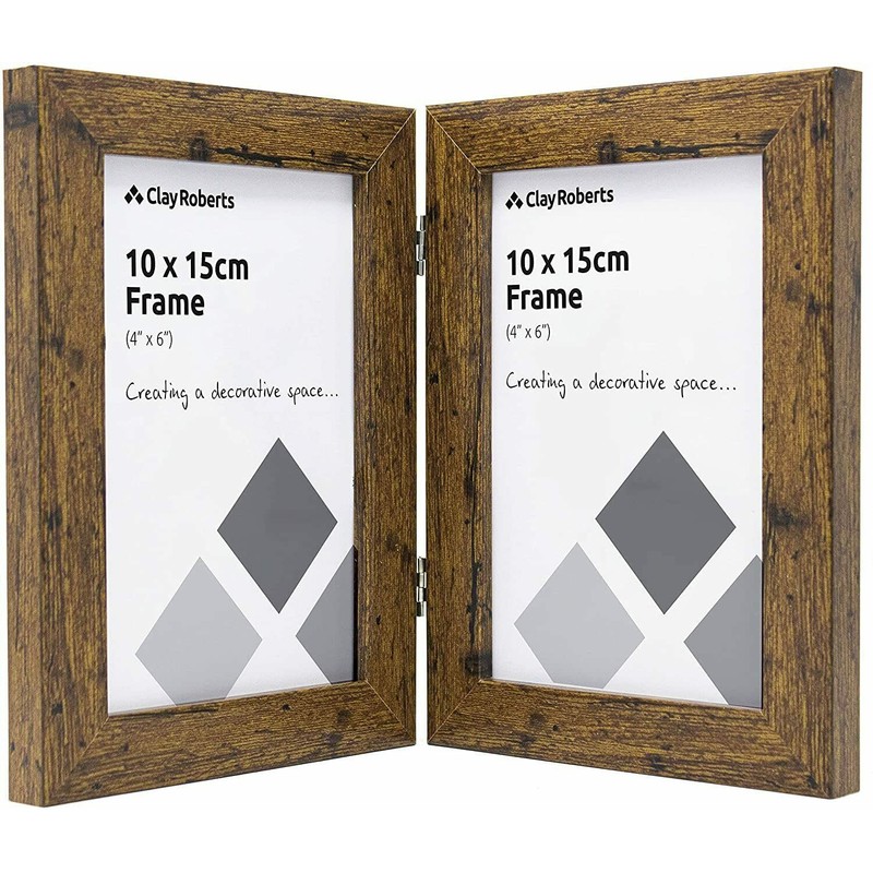 Clay Roberts Double Photo Picture Frame 6 x 4, Brown, Holds 2 Standard Photographs, Freestanding, Twin Hinged 6x4" 10 x 15 cm Picture Frames