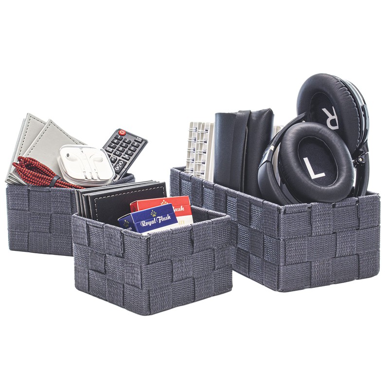 Clay Roberts Storage Baskets, 3 Pack, Grey, Small Storage Baskets Sets, Fabric Woven Storage Boxes for Home, Kitchens, Offices, Cupboards, Bathrooms and Shelves
