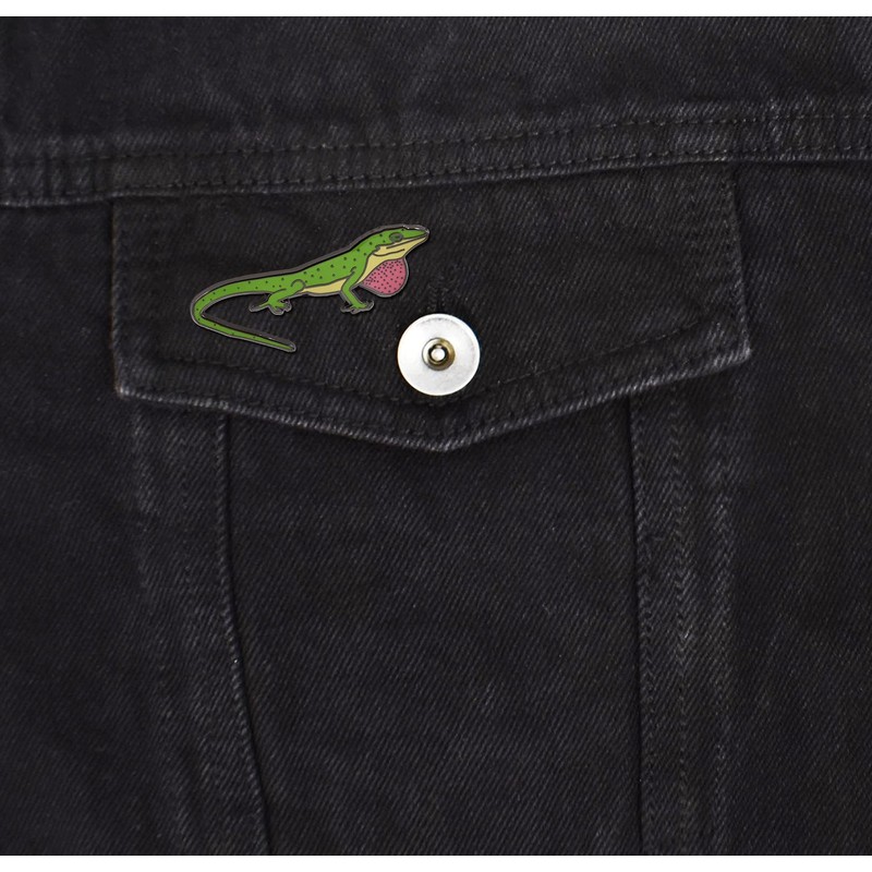 - Green Anole Lizard Hard Enamel Pin with Brown Enamel and Black Metal