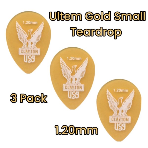 Clayton Ultem Gold Small Teardrop Guitar Picks - 1.20mm 3 Pack