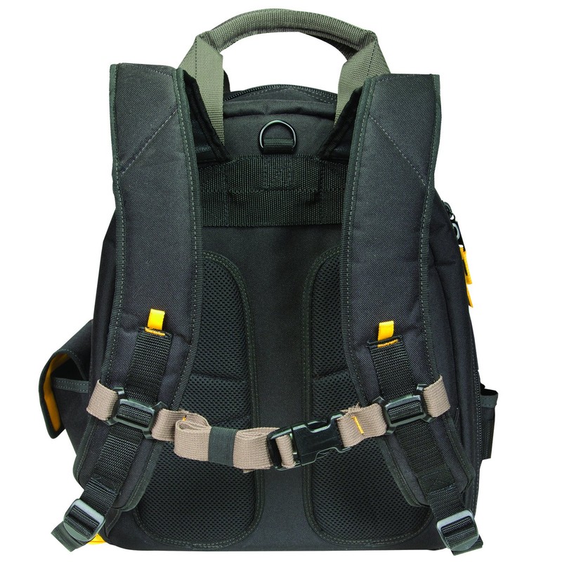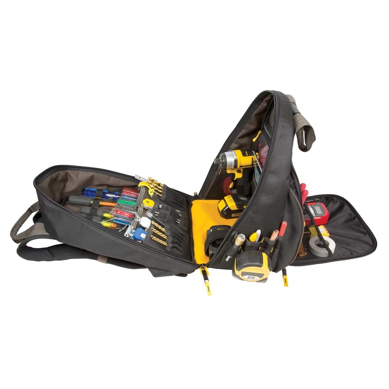 - CONVENIENT AND COMFORTABLE: Carrying handles installed on this tool backpack make for easy transport and adjustable padded shoulders with sternum strap and back padding for comfort.