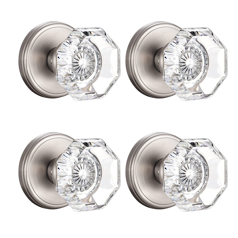 CLCTK 4 Pack Glass Dummy Door Knobs, Single Side Dummy Door Knob Set, Brushed Nickel
