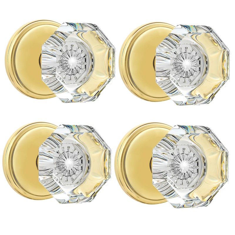 CLCTK 4 Pack Glass Dummy Door Knobs, Single Side Dummy Door Knob Set, Polished Brass/Gold