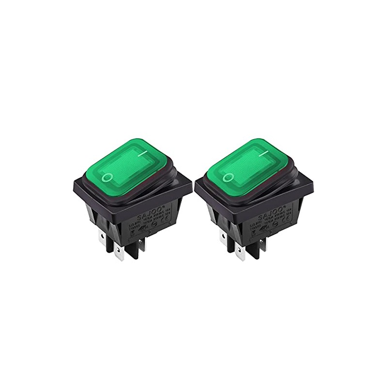 - Product Name : Rocker Switch;Poles:DPST;Connectors: 4 Pins;Color : Black, Green;Material : Plastic, Metal