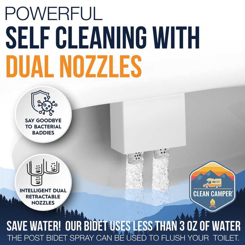 Clean Camper The Original RV Bidet Self-Cleaning Dual Nozzles | Non-Electric, Reversible Design | Easy Installation, RV Waterline Compatible | Adjustable Gentle Water Pressure | Eco-Friendly