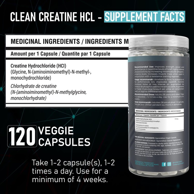 Clean Creatine HCl Powder - Pure Creatine Hydrochloride for Men & Women, Muscle Growth & Strength Building Power, Athletic Performance and Recovery, Vegetarian Friendly (Clean Citrulline -120 Capsules