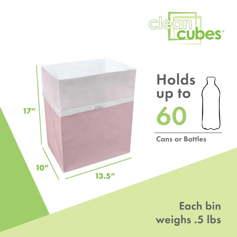 Clean Cubes 13 Gallon Disposable Trash Cans (3-Pack). Reusable Garbage and Recycling Bins for Parties, Events, and More (Pink - 17" Height x 13.5" Width x 10" Depth)