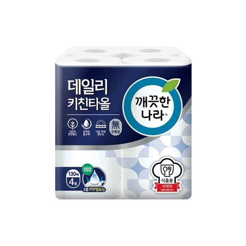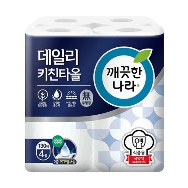 Clean Nara Clean Nara Kitchen Towel (130 sheets x 4 rolls Daehan Pulp) / 깨끗한나라 깨끗한나라 키친타올(130매X4롤 대한펄프)