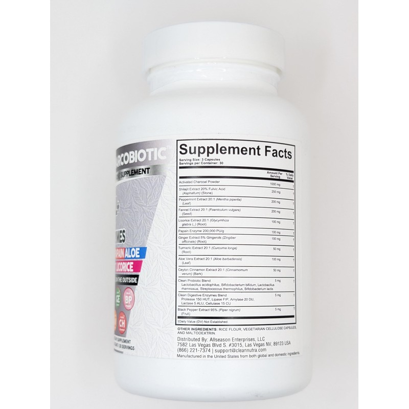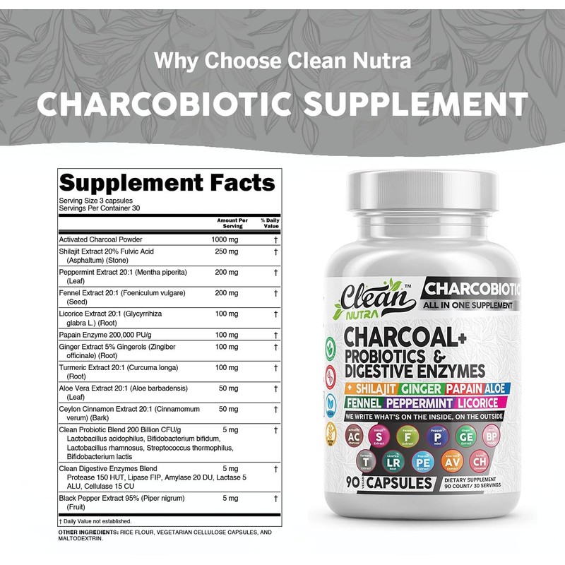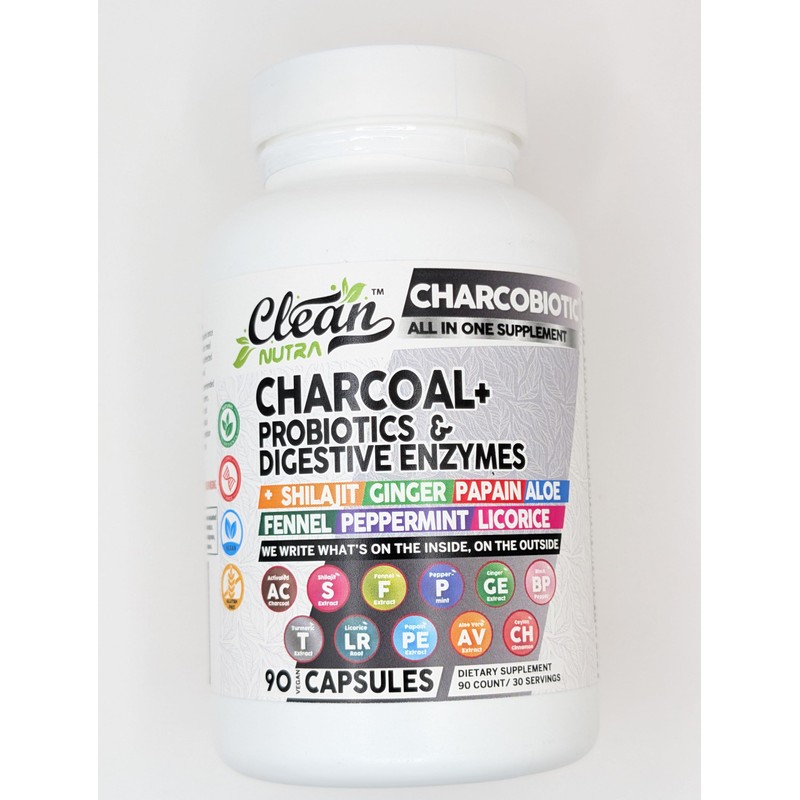 Clean Nutra Activated Charcoal Capsules Shilajit Pills Probiotic Digestive Enzymes for Digestive Health with Peppermint Fennel Licorice Papain Ginger Turmeric | Gut Health